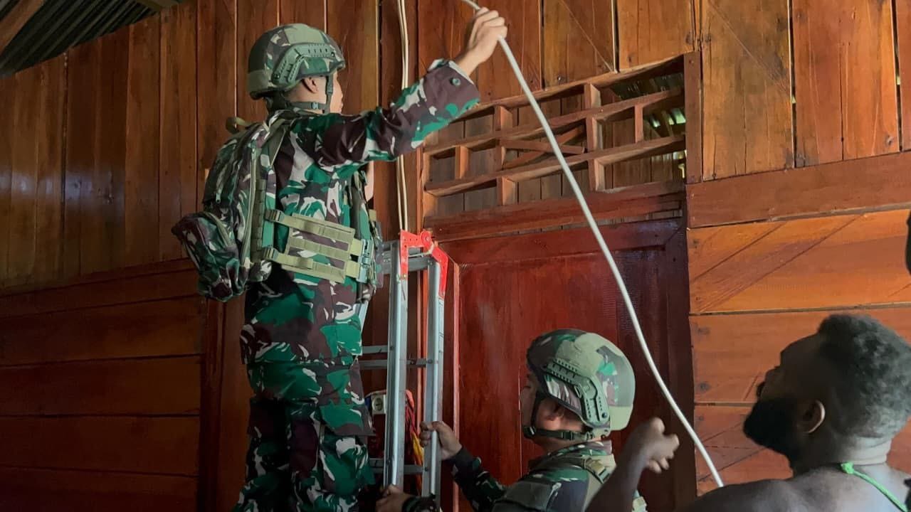 Mata-publiknusantara.com, Papua, –TNI (Tentara Nasional Indonesia) terlibat aktif dalam berbagai program kelistrikan di Papua melalui kegiatan pembinaan teritorial (binter) Satgas Yonif 521/DY membantu perbaikan instalasi listrik warga yang rusak di Kampung Benawa, Distrik Benawa, Kabupaten Yalimo, papua pegunungan di rumah salah satu warga.
