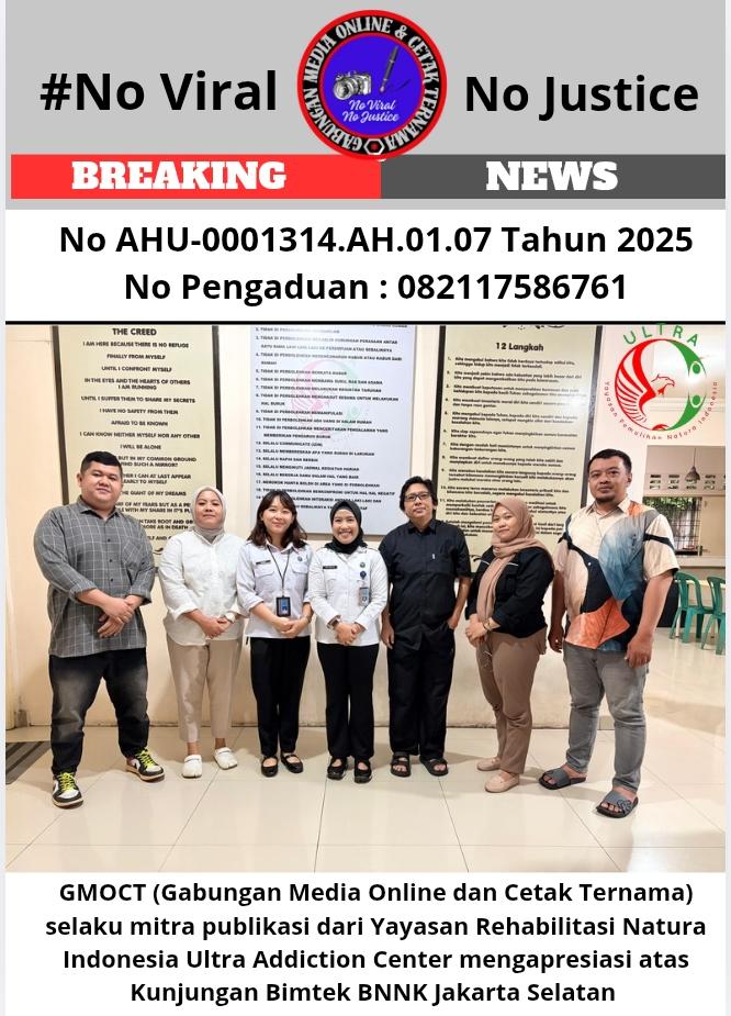 Informasi mengenai kunjungan ini diperoleh dari Humas Yayasan Natura Indonesia Ultra Addiction Center. Selain itu, GMOCT Gabungan Media Online dan Cetak Ternama sebagai Mitra Yayasan Rehabilitasi Natura Indonesia Ultra Addiction Center dalam bidang Publikasi sangat mengapresiasi langkah yang dilakukan oleh BNNK Jakarta Selatan melalui kunjungan bimtek tersebut.