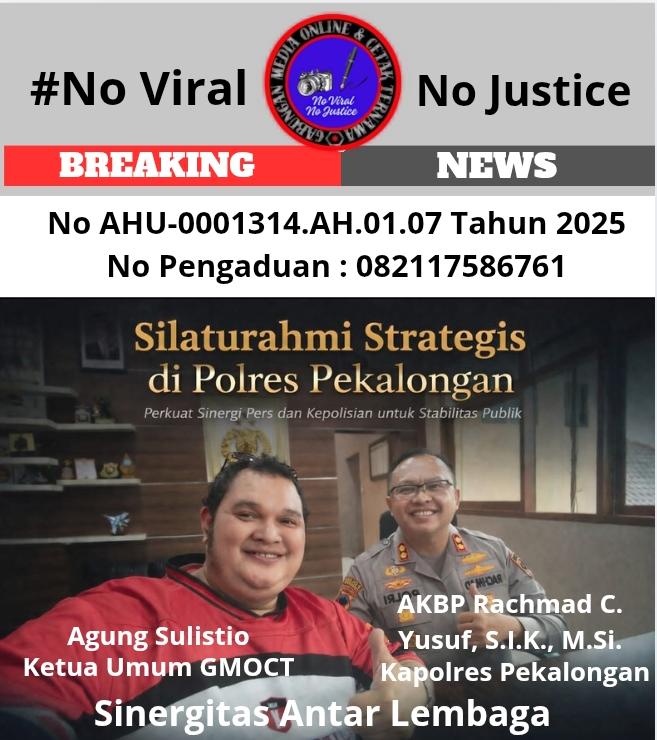 Mata-publiknusantara.com, Kajen, 27 Maret 2026 — Upaya memperkokoh kemitraan antara insan pers dan institusi kepolisian kembali diwujudkan melalui kunjungan silaturahmi yang dilakukan oleh Agung Sulistio, Pimpinan Redaksi kabarsbi.com, Ketua Umum Gabungan Media Online Cetak Ternama (GMOCT), serta Ketua II DPP LPK-RI, ke Polres Pekalongan di Kajen. Informasi terkait kunjungan ini diperoleh oleh GMOCT dari media online Kabarsbi yang merupakan salah satu anggota yang tergabung dalam Gabungan Media Online dan Cetak Ternama.