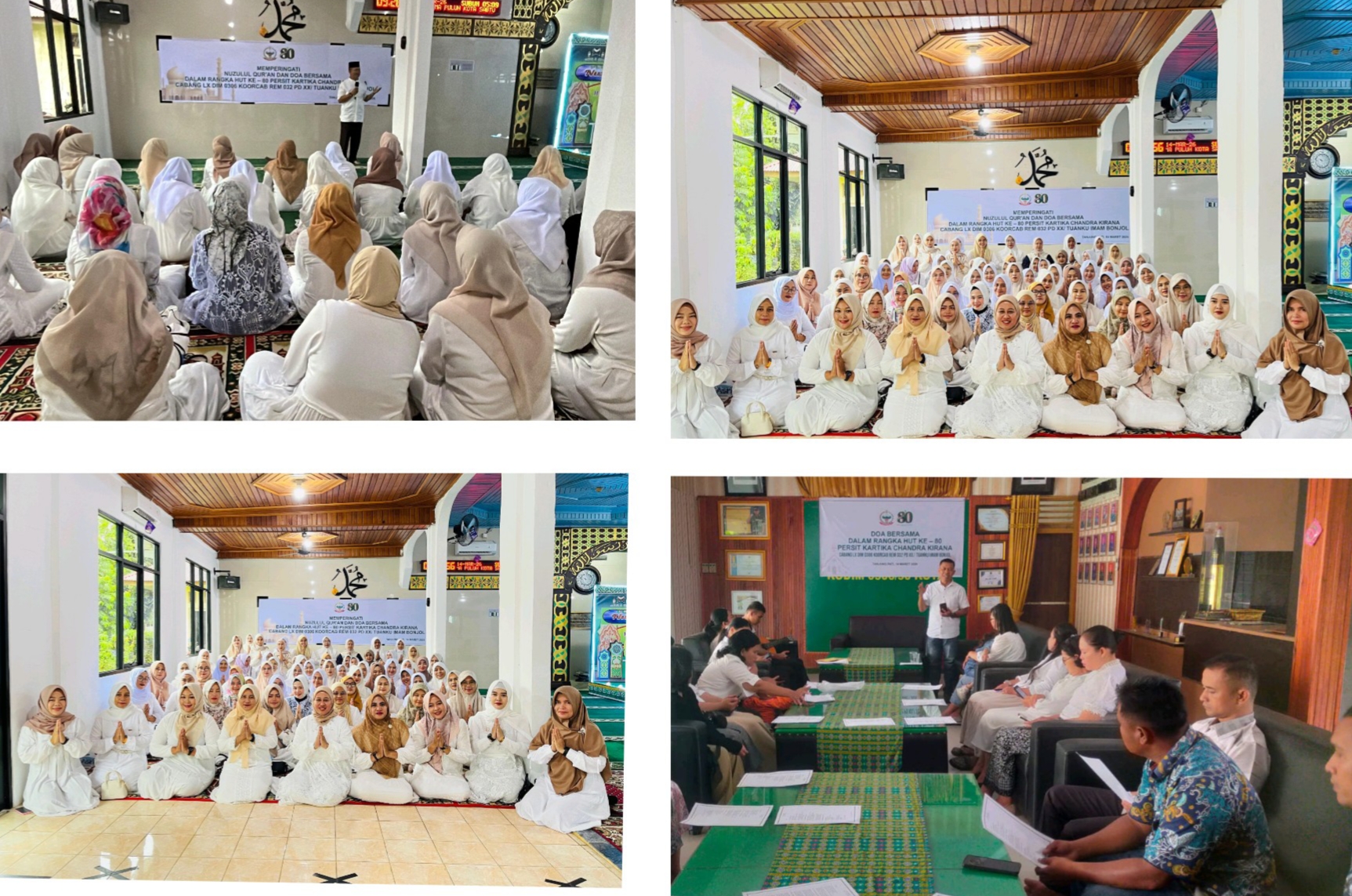 Tanjung Pati, Kecamatan Harau, Kabupaten 50 kota. Telah dilaksanakan kegiatan memperingati Nuzulul Qur’an dan Do’a Bersama baik bagi personil yg beraga islam maupun personil yg beragama nasrani dalam rangka HUT-80 Persit Kartika Chandra Kirana Cabang LX Dim 0306 Koorcab Rem 032 PD XX/Tuanku Imam Bonjol.