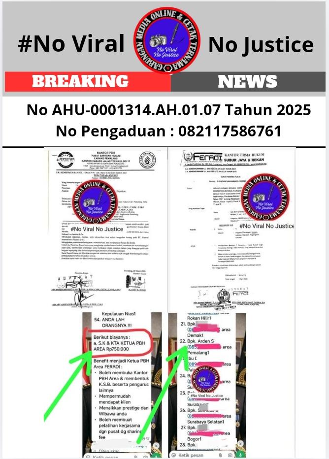 Hingga berita ini diturunkan, belum ada keterangan resmi dari pihak Feradi WPI Paralegal maupun pihak Pengacara Feradi WPI atas sejumlah dugaan yang disampaikan.